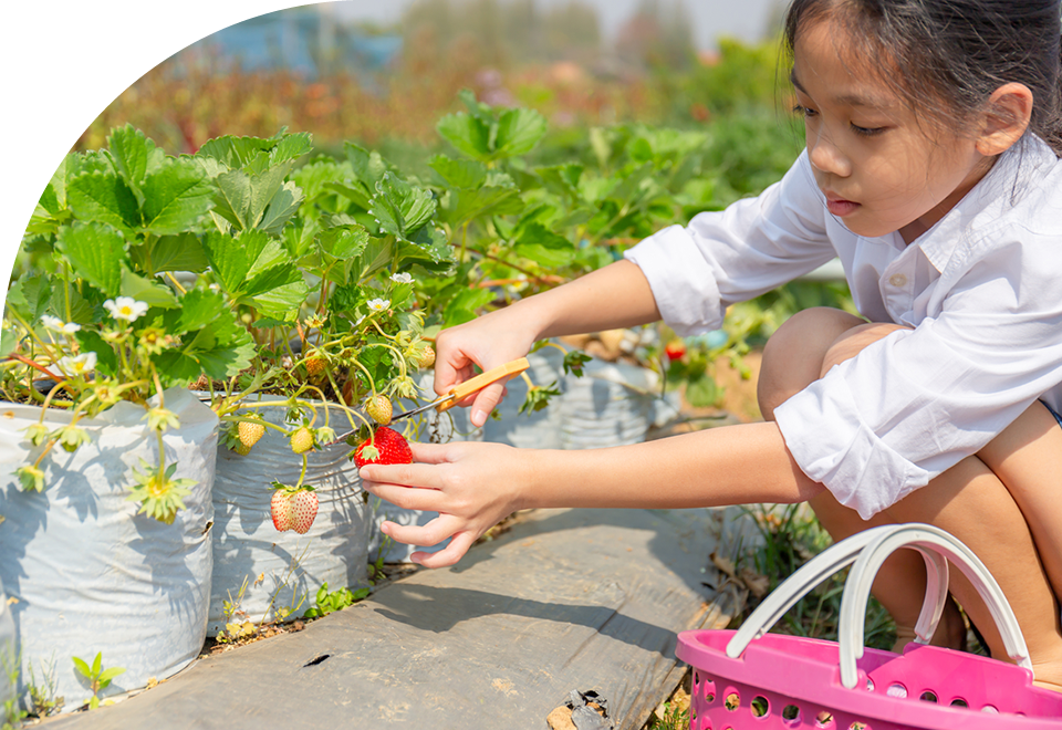 採摘體驗-學生親手採摘草莓,學習如何挑選成熟果實,並感受農業的魅力。
